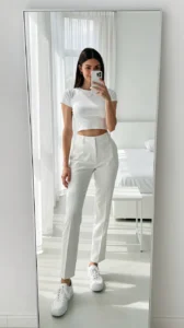 - Add white sneakers or sandals