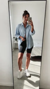 3. Oversized Shirt + Biker Shorts