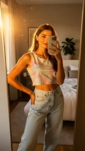 - Pair with a tight crop or tank