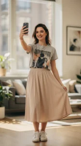 5. Graphic Tee + Midi Skirt
