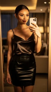 22. Satin Top + Leather Skirt